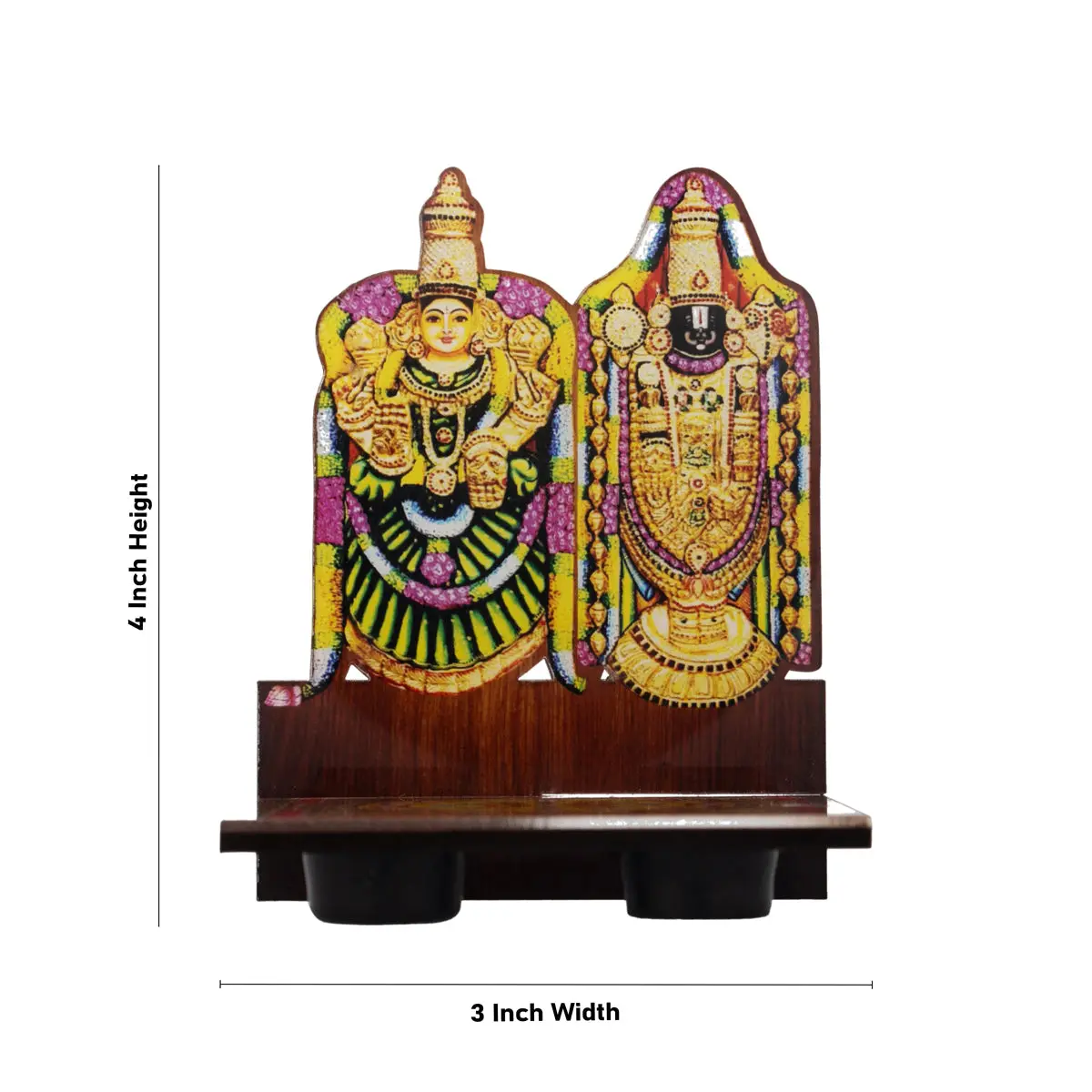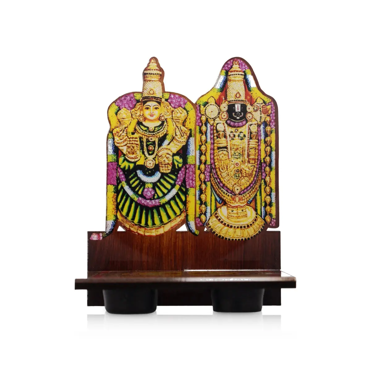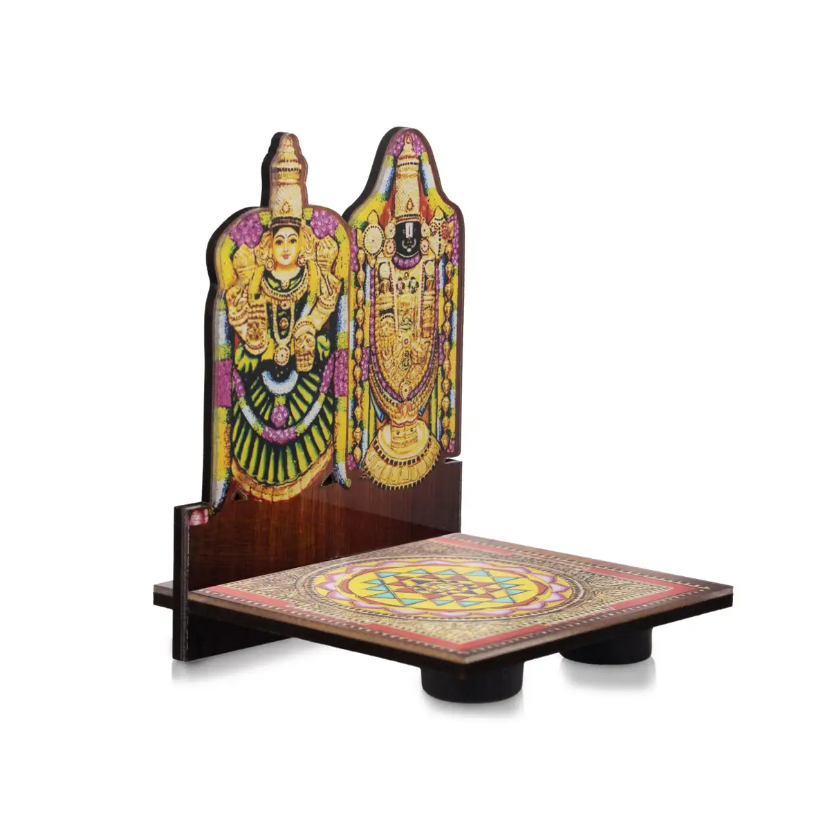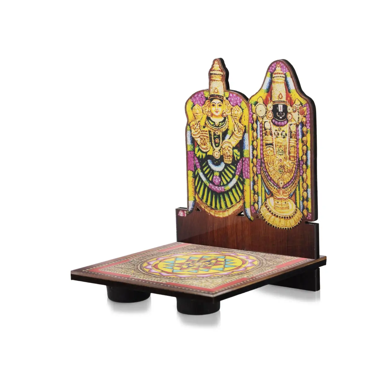 Perumal Thayar Photo Frame With Sri Chakra Design Manai Palagai - 4 x 3 Inches | Bajot for Pooja/ 50 Gms Approx