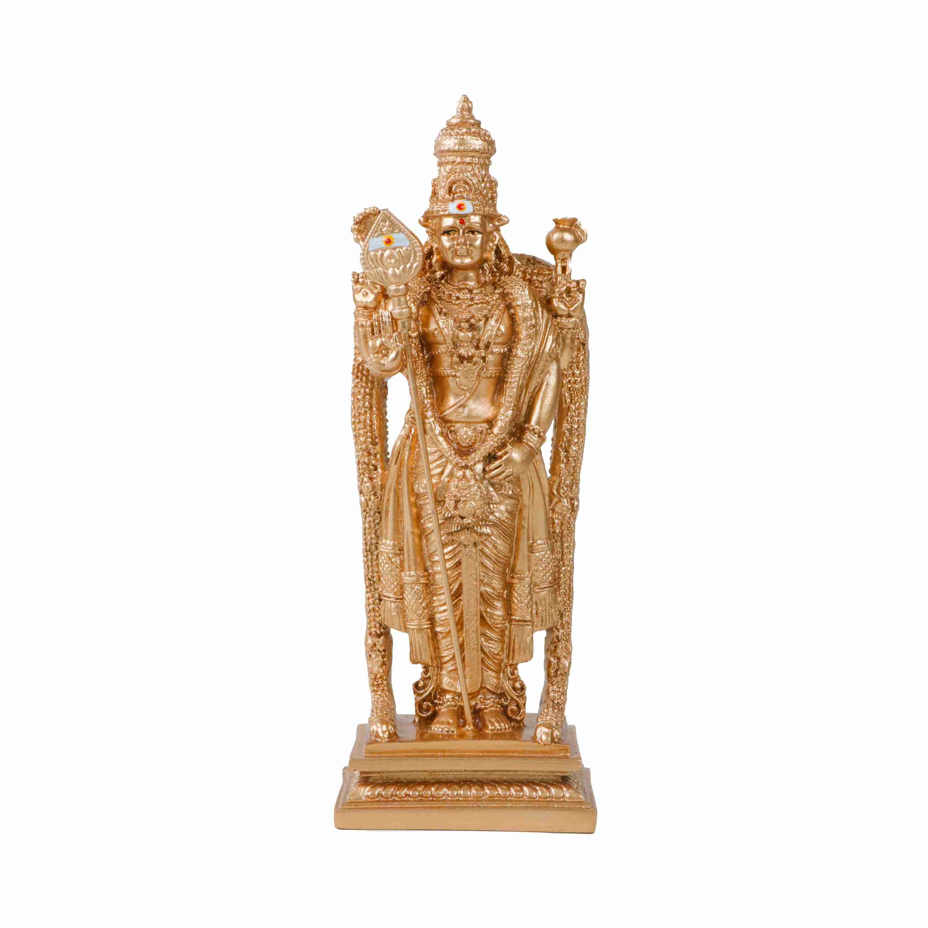 Murugan Statue - 10 x 4.5 Inches | Standing Murugan Idol/ Resin & Gold Polish Murugan Silai for Pooja