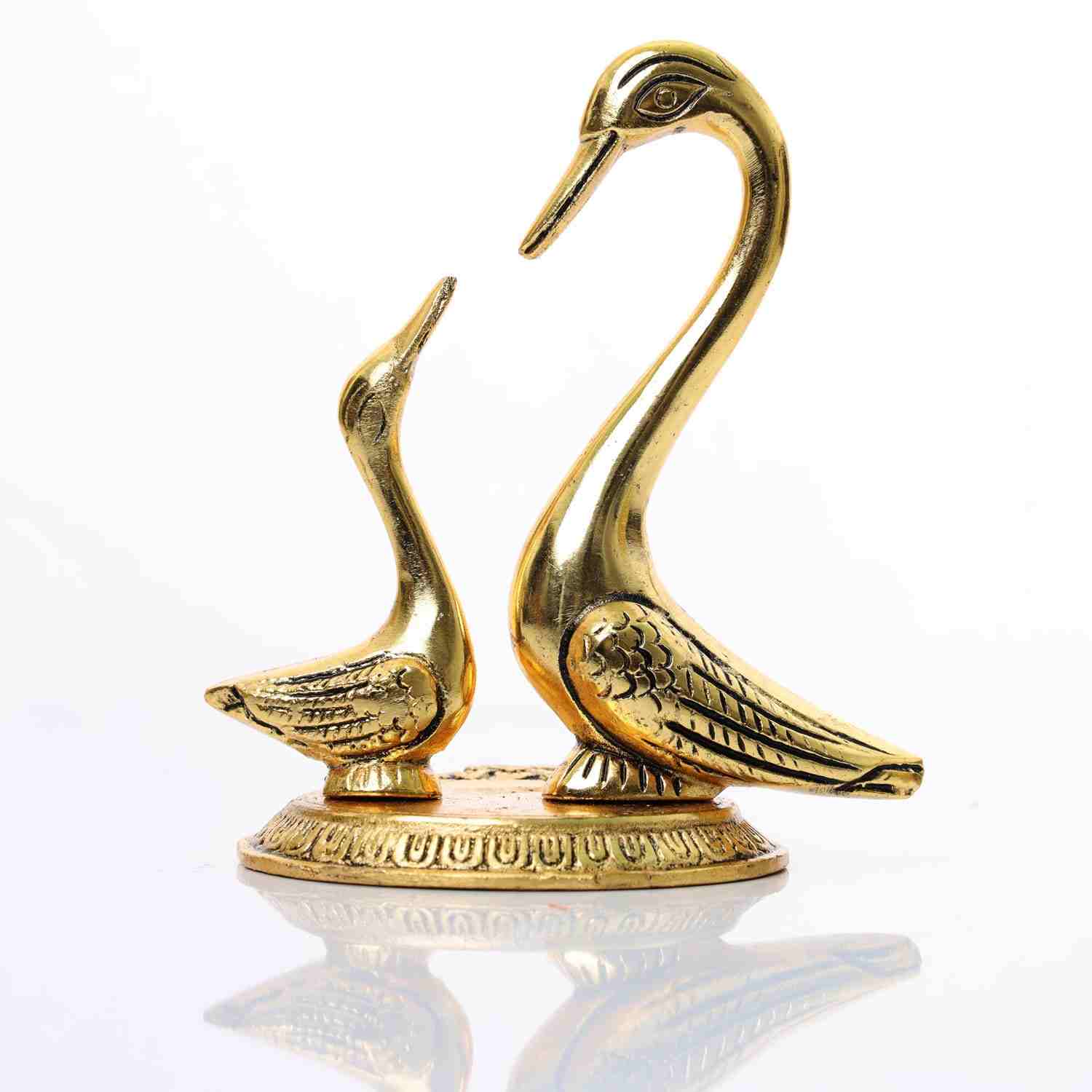 Swan Statue - 4 x 3.5 Inches | Gold Plated Statue/ Aluminium Swan Idol for Home/ 220 Gms Approx